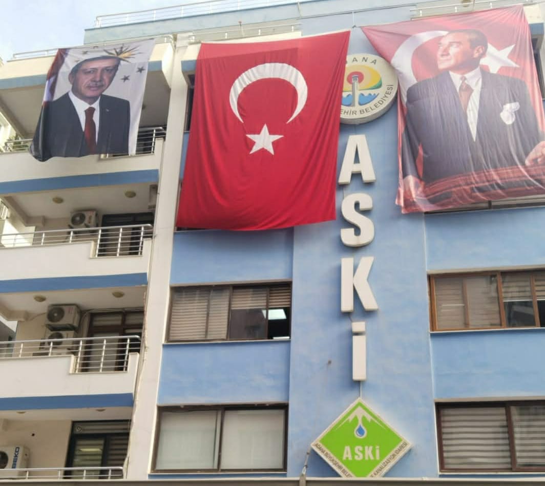 Dikkat çeken bu uygulamanın bunun nedeni ise öğrenilemedi. Ayrıca belediye binası dışında Adana Su ve Kanalizasyon İdaresi binasına da Atatürk ve Türk bayrağı ile beraber Erdoğan’ın da fotoğrafı asıldı.