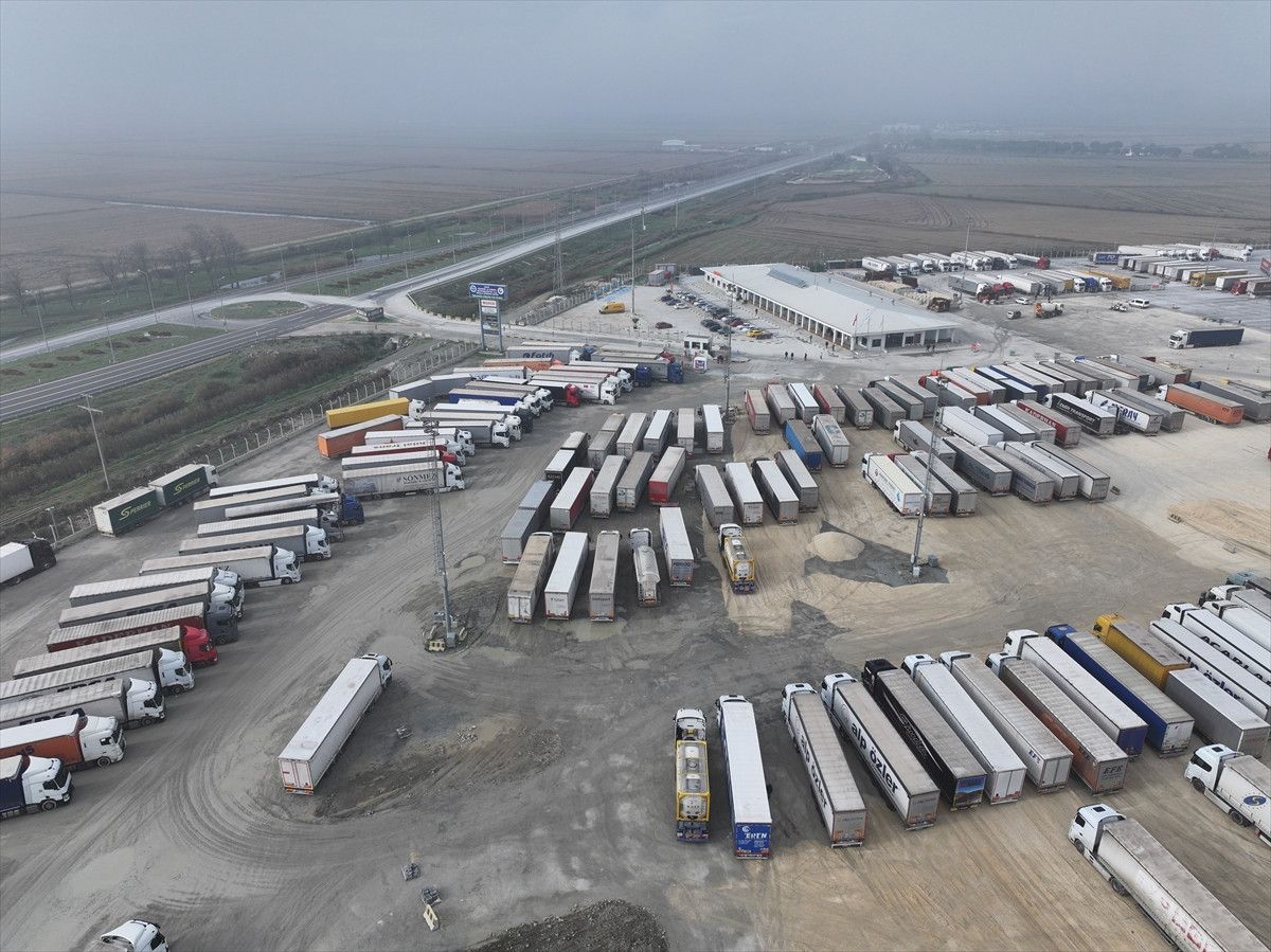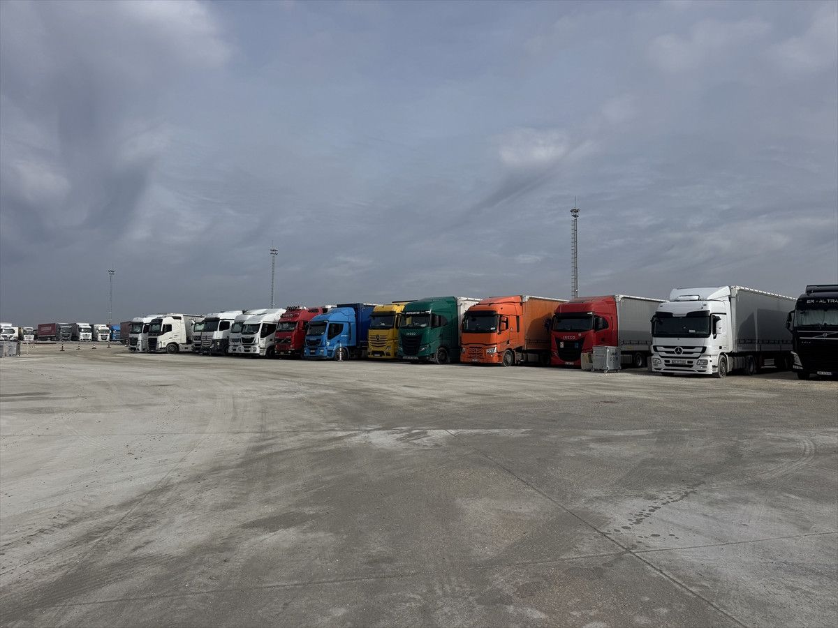 Kapıdan yalnızca bozulabilir gıda ürünleri ve ilaç gibi acil yük taşıyan tırların çıkışına izin veriliyor.